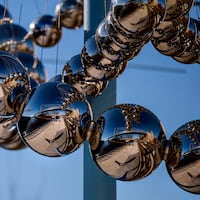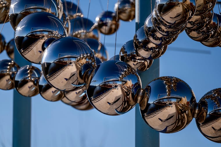 - Seeing the Ben Franklin Bridge reflected by steel spheres